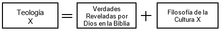 Para investigar cómo evolucionó históricamente la teología, conviene reconocer que las diferentes teologías, se desarrollaron tomando las verdades reveladas por Dios en la Biblia, ordenándolas sistemáticamente con algún sistema de pensamiento apropiado. A lo largo de la historia del cristianismo, lo dicho anteriormente se puede resumir en una ecuación simple T = B + F, o sea Teología X = Biblia + Filosofía X.