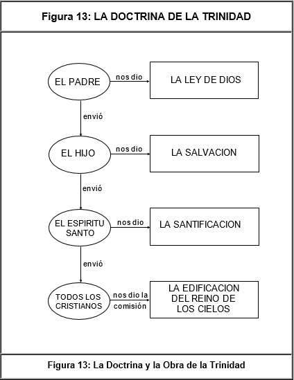 Estos conceptos se ilustran gráficamente en la Figura 13: "La Doctrina y la Obra de la Trinidad", de la página 50.