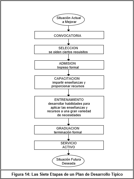 Esta situación se ilustra gráficamente en la Figura 14: "Las siete etapas de un Plan de Desarrollo Típico", de la página 51