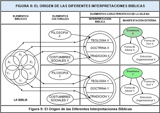 Esta íntima relación entre la cultura predominante en un país y la interpretación bíblica mayoritaria del mismo se ilustra gráficamente en la Figura No. 8, página 59.