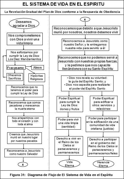 En la Figura 31, página 122, se ilustra en forma de un diagrama de flujo la manera en que se va desarrollando la vida espiritual de cada creyente conforme Dios le va revelando las siguientes etapas sucesivas de su plan, dependiendo del grado de obediencia que cada quién vaya ofreciendo a las instrucciones que se le habían revelado en la etapa anterior.
