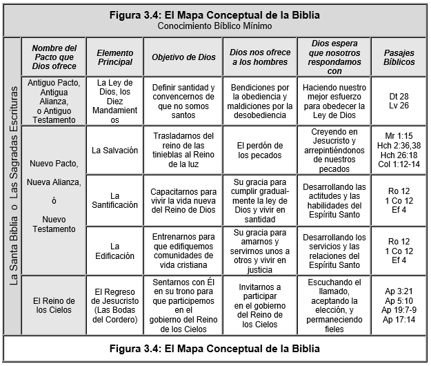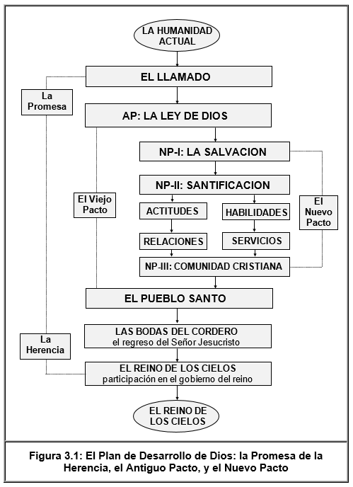 Estos conceptos se ilustran gráficamente en la Figura 3.1 de la página 70. El plan que Dios utiliza con cada ser humano es el mismo que utilizó como ejemplo con el Pueblo de Israel en la Biblia. El apóstol Pablo haciendo referencia al Antiguo Pacto, les explica a los Romanos y a los Corintios, que esas cosas sucedieron como ejemplo para nosotros.